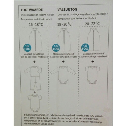 Hier ongeveer 22 graden, op moment 0,8TOG (Hema) en een pyjama met voetjes