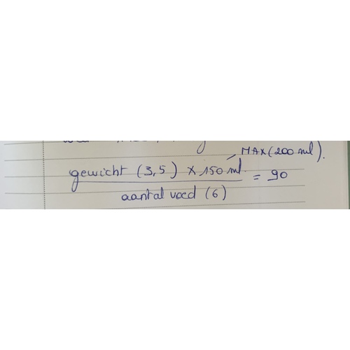 Zoontje was prematuur dus het schema met leeftijd in weken dat ik meekreeg van het consultatiebureau kon ik niet gebruiken omdat hij er langer over doet nu om het gewicht te bereiken zoals andere baby’tjes van die leeftijd die voldragen waren. Ik kreeg een formule van de vroedvrouw die je kan gebruiken om te zien hoeveel je kindje kan drinken bij zijn gewicht. Kan misschien een hulpmiddel zijn.
