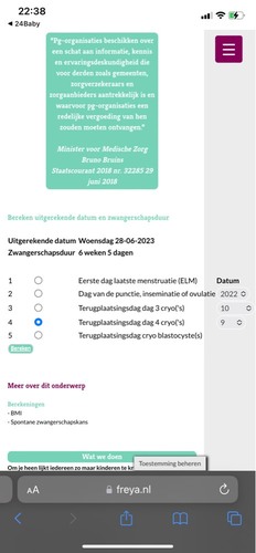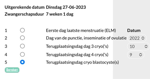 Je kan trouwens hier ongeveer je uitgerekende datum en zwangerschapsduur berekenen: