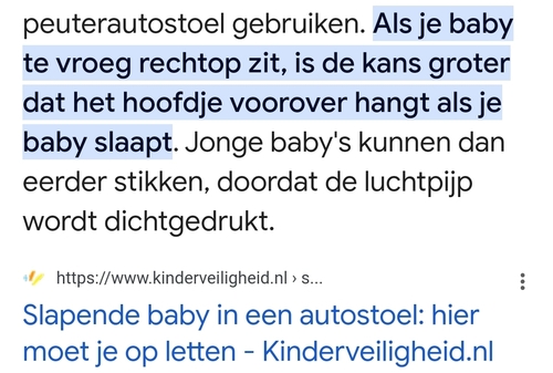 Hier hetzelfde, geen jas aan en de gordels zitten strak en de stoel staat echt in de ligstand. Ik las dat de luchtpijp kon worden dichtgedrukt door deze houding, vandaar dat ik me zorgen maakte.