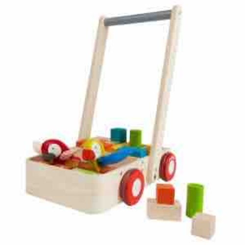 Wij hebben deze van PlanToys. Erg tevreden van! Voor onze zoon ermee kon rechtstaan, speelde hij met de blokken. Vanaf zijn 10 maanden kon hij zich eraan optrekken zonder om te vallen en ermee stappen. Hij is nu vandaag toevallig exact 16 maanden en kan al 3 maanden zelfstandig lopen, en rent er echt mee rond nu. Sinds kort kan hij er ook mee draaien. Hilarisch om te zien. 馃槄