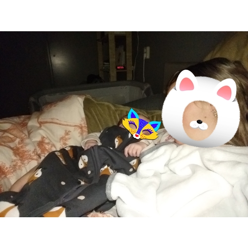 Nu een dochter met flinke reflux en ze kan dus niet plat liggen. Opgehoogd bedje werkt ook niet. Dus ze ligt heerlijk bij mij te slapen s'nachts. Ik slaap en zij ook; winwin😇