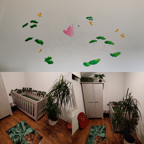 Jungle thema. Andere kant staat de commode nog enkel de decoratie moet nog ...
