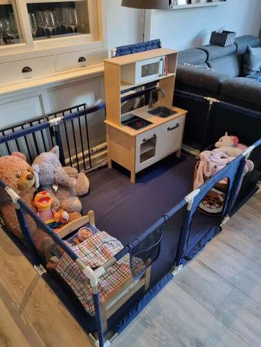 Wij hadden een soort van huisje voor haar gemaakt in de grond box, vond ze geweldig en mama ook. Deurtje dicht en je kon ff naar de wc 😂😂 niet heel mooi ofzo maar wel erg praktisch. Knuffelhoek, keukentje, poppenbedje en manden met speelgoed 😎