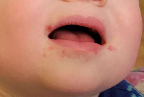 Dit was bij mijn zoontje krentenbaard. Hij heeft toen ook hand voet mond ziekte erbij gekregen en erg van afgezien het zou ook eventueel de waterpokken ofzo ik ben geen dokter en zou het late nazien of als er besmetting rondgaat op de crèche ofzo weet je het ook snel meestal