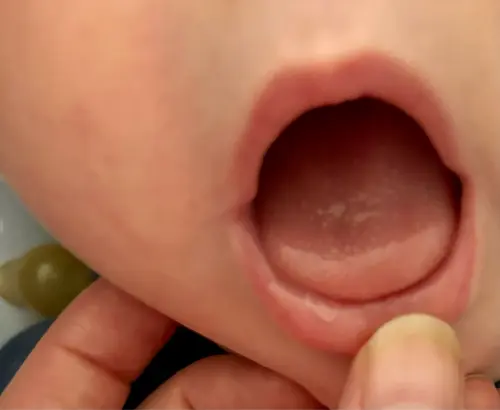 Is dit spruw? Sinds gisteren witte plekjes, ik kan ze niet wegpoetsen. Op zijn tong niks te zien.
