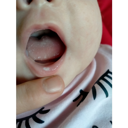 Spruw zit ook vaak op de binnenkant van de wangetjes,als het daar niet zit kan het makkelijk gewoon melk zijn😊