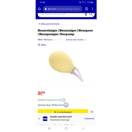Ik zou dan eerder voor een neussnuiter gaan. Wij vinden het zoveel handiger: na het spoelen zuig je het overtollige snot weg. In tegenstelling tot een neuspomp, kan je dat ‘voorzichtiger/trager’ doen, maar ook eventjes aanhouden in plaats van na 1 pompje opnieuw te moeten doen. Veel baby’s vinden het niet leuk, maar zo’n pompje zuigt ineens wel redelijk fel. Bij een snuiter kan je dat meer geleidelijk aan doen.
