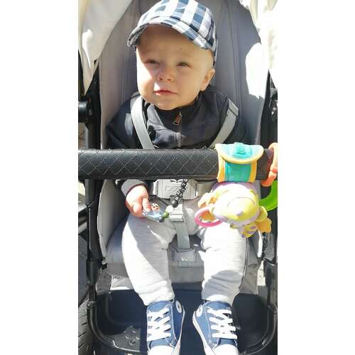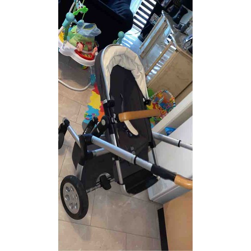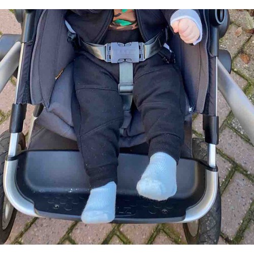 Zo hoort het echt niet. Ik zou hem even uit elkaar halen en opnieuw in elkaar zetten. Misschien zit daar de fout. Zou op deze manier de buggy niet gebruiken is een hele slechte houding.