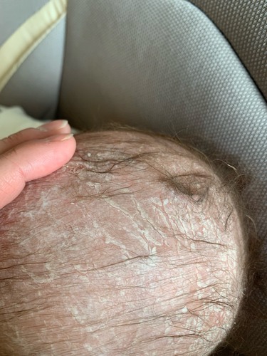 Ons dochtertje heeft ook berg, ziet er een beetje hetzelfde uit behalve dat bij jullie kindje de ‘vlakjes’ wat groter zijn. Aangezien het echt alleen op het hoofdje is vermoed ik wel dat het berg is, zag van de week een kindje met ichtyosis maar dat zit op het hele lichaam volgens mij en ziet er ook weer net wat anders uit.