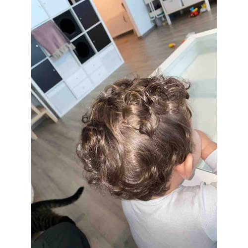 Maar naar de kapper gaan betekent niet per se dat alles eraf moet toch? Je kan ook gewoon even een beetje bij laten werken. Ik wil het haar van onze peuter (overigens een meisje zonder krullen) ook wel graag langer laten groeien, maar af en toe naar de kapper maakt het toch wel net ff wat verzorgder.