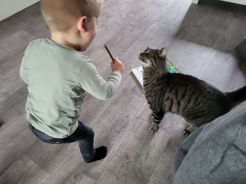 Onze kat (10,5 jaar oud) moet niets hebben van onze dreumes van ruim een jaar oud (okt 2021). Ze houdt van rust en niet van dat getetter van onze kleine.