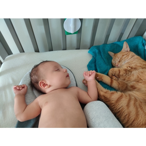 Wij hebben ook 2 katten maar ik had babykamer van in begin toe. Nu ligt die wel nog in cosleeper. Hij is 4 maand en de kat die geobsedeerd is door mij komt ook zelfde doen bij de kleine. De andere doet gewoon zijn zin en komt af en toe is kijken. De foto was toen hij 2 maand oud was