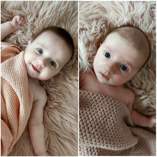 Livia, geboren op 21-03-21. De ene foto 6 weken en de andere foto 6 maanden 🥰 De tijd gaat veel te snel! 🥺