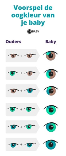 Ik heb bruine ogen, partner heeft blauwgrijze ogen. Onze dochter werd geboren met donkergrijze ogen, en deze werden stelselmatig lichter naar lichtblauw. Op 6 maanden kon je al zeggen dat ze blauw zouden blijven, eventueel nog lichter of wat dieper worden, maar bruin of grijs zat ze totaal niet meer in. Nu is ze bijna 1 jaar en heeft ze fel lichtblauwe ogen ☺️