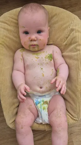 De vloer wordt toch wel vies, dus die maken we dagelijks schoon, en mijn zoontje wordt ook elke avond gewassen. Het voelt niet alsof we er veel extra werk van hebben, maar ik zie wel dat mijn zoontje geniet van het eten en het ontdekken van de verschillende structuren. Ik vind het juist goed dat hij zelf al het eten mag ontdekken. Ik geniet er zelf ook van dat hij zo kan smikkelen 🤭