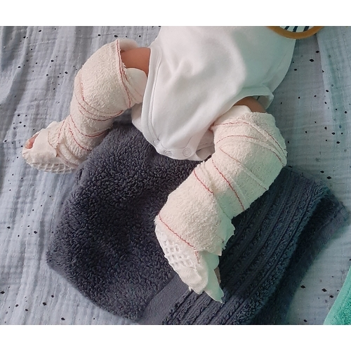 Hier een dochtertje met 2 klompvoetjes. Toen ze nog het gips zat deden we haar gewoon een pyjamabroekje of legging aan, Alleen dan 1 of 2 maten groter zodat deze over het gips paste. Dat was heel goed te doen.. Ze sliep gewoon onder een lakentje/ deken, dus ik kan je helaas niet helpen met een slaapzakje die fijn daarvoor is. Misschien heb je iets aan de Facebook groep: Nederlandse vereniging klompvoetjes voor ouders. Daar staat veel informatie op en ervaringen en tips van andere ouders met kindjes met klompvoetjes