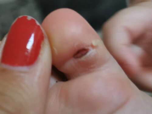 Jeetje, zou hier toch echt al meteen mee naar de dokter zijn gegaan. Zou dat meteen doen met zoiets, infecties zo onder de voetjes al helemaal, en inmiddels zelfs al wild vlees..? 😓😓