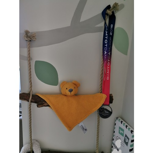 Wij hebben een aapjes kamer gemaakt, dit kan natuurlijk met alle dieren. Vastgemaakt met onderdelen van een lamp + tireraps en touw om bamboe