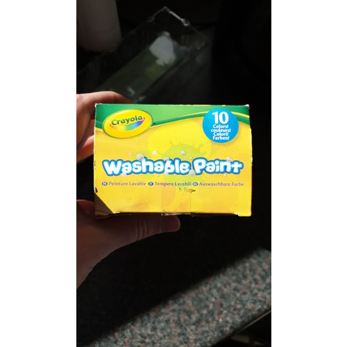 Dit spul is fantastisch! Even nat doekje en alles weer schoon. Ik deed dan nog wel eens wat verf op stuk karton en kind er doorheen kruipen of op de buik erbij en dan met handjes kliederen