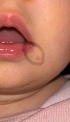 Oei, dit is potentieel echt heel gevaarlijk!! Kan een zware hersenbeschadiging veroorzaken doordat de infectie naar het hele hersenvocht gaat. Klinkt heftig, maar dat is het ook… Zsm naar het ziekenhuis gaan. Kijk maar eens naar: https://youtu.be/pxarUWTJRDQ?si=O6UFoxYxqzSmevjs (Dit meisje werd gekust door iemand met een koortslip op kraamvisite, dus dat is wel veel vroeger, maar bij mijn weet kan het t/m het tweede levensjaar erg gevaarlijk zijn.) Sterkte!!