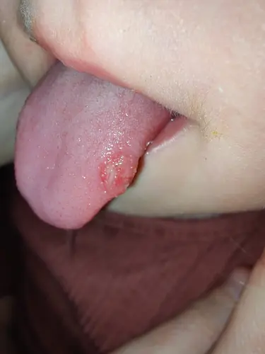 Iemand die dit herkent? Klaagde na het slapen wel over pijn in haar mond maar dacht aan haar doorkomende kiezen. Dit viel me echt nu net pas op. Lijkt een soort scheurtje te zitten alsof ze erop gebeten heeft maar dat heb ik dan überhaupt niet meegekregen. En ziet er zo dik uit ofso🥲
