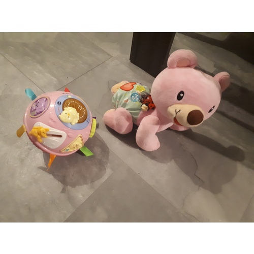 Wij hebben van vtech een kruip beer en van vtech een bal.