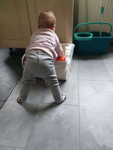Ze ligt al vanaf de geboorte zowat heel graag op haar buik, en is echt supersterk. We merken dat ze zich voornamelijk mentaal / sociaal goed ontwikkeld, waardoor het kruipen misschien wat achterblijft. Ze kletst erop los ten opzichte van andere kindjes. Wij denken trouwens dat de direct na het kruipen ook snel gaat staan, ze heeft zulke sterke beentjes.