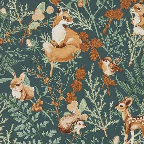 Volgens mij is die print vrij nieuw in het assortiment, vandaar dat er wss geen foto van iemand te vinden is. De kleuren zijn vrij rustig, print wat drukker dus daar kan je de keuze al op baseren. En anders één rol openmaken en ruime banen knippen (hoogte plafond etc). Is het dan niets dan kan je die rol gebruiken voor een leuk DIY project (zoals de binnenkant van een last behangen).