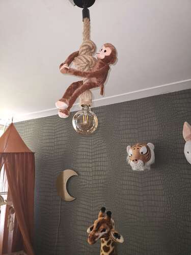 Wij hebben een led lamp van de Bauhaus aan het plafond met ster effect. Als nachtlampje een Flow Amsterdam Moby. Super schattig lampje in de vorm van een walvis. Accuduur is super en je kan hem wisselen van kleur door erop te tikken. Je kunt hem gewoon naast je kindje in bed leggen. We hebben Moby voor beide dochters.