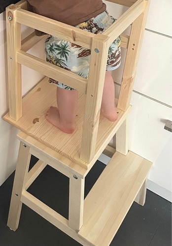Deze van hello archie, heel fijn en kan je ook een stoel met tafeltje van maken. Als mijn partner meer klus skills had, dan had ik de Ikea hack gebruikt 😜. Doet hetzelfde wss. Echt enorm leuk die leertorens!!