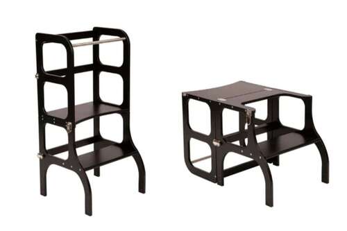 Mijn vriend heeft er zelf een gemaakt en die kan omklappen naar een tafeltje. Zoals op dit plaatje. Dat is echt fantastisch, helemaal haar tafeltje waar ze op tekent, eet, knutselt, zit als ik d'r haren doe. En ze kan lekker mee helpen koken in de keuken. Dus ik zou zeker voor een leertoren met dubbele functie gaan.