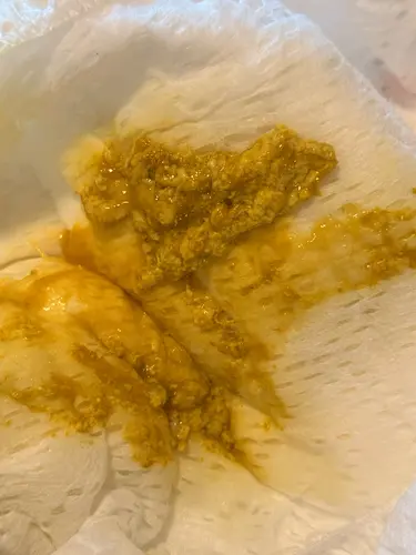 Online zag ik een foto van wit achtige ontlasting dat er ook een beetje zo ...