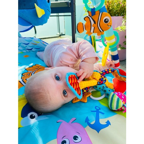 Hier heb ik 2 baby gyms staan boekjes knuffels kralen rekje ect .. waar speelt ze mee ... met der speenkoord der slaapknuffeltje en der hydro doek😅🤣