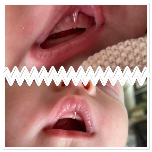 Onze dochter haar lipbandje en tongriempje zijn gekliefd toen ze 3 dagen oud was. Haar lip bandje zag er inderdaad zo uit. Misschien zelfs nog wel iets minder.