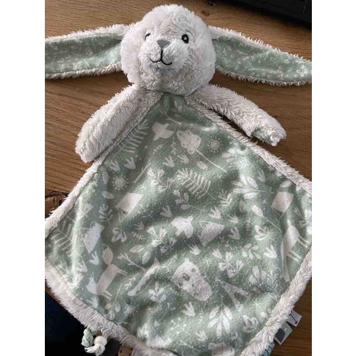 Ik heb niet de knuffel maar wel het knuffeldoekje liggen zie ik. Geen idee of deze er ook uit gaat. Nooit gebruikt (mijn zoon is nogal gehecht aan een andere) maar hij is wel wat gepluisd zie ik (op het groene gedeelte).
