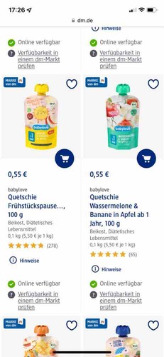 Hee, ik woon in Duitsland en wij bestellen altijd bij DM. Als je een specifiek merk/maat in gedachten hebt kan ik het wel even voor je opzoeken.