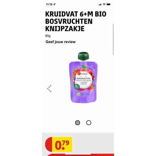 Zo heb ik het etiket eens doorgenomen van het knijpzakje bosvruchten van Kruidvat. Daar staat op: