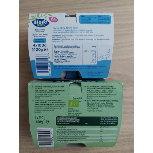 Scheelde 64 cent. Voor de Hero betaalde ik €2,65 , de Organix was €3,29 (Belgische supermarkt) 😉
