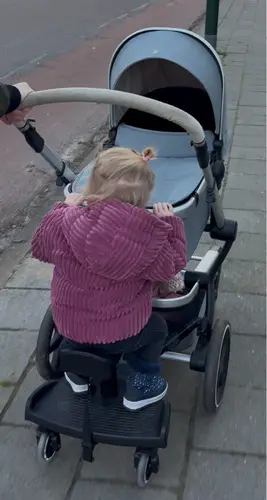 Die zakken zien er heel comfortabel uit maar lijken me niet echt veilig. Zeker een kind van 3 is al best zwaar, lijkt me dat die wagen dan best snel achterover klapt als je niet oplet? Hier was met 2,5 een meerijdplankje perfect in die eerste periode, en met 3 gebruikten we hem al een heel stuk minder. Maar het is wel fijn om hem als optie te hebben!