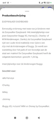 Wij hebben ook de buggy EasyWalker Miley 2 en een EVE Kid Sit. Maar die past niet op de buggy. Daarvoor is die stang te laag!