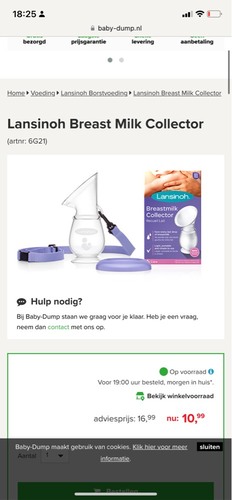 Ik heb die van lansinoh. Die vind ik echt heel erg fijn, die zet je erop zuigt zich vast en je doet dat koord om je nek zodat als die loslaat je melk tenminste niet ergens neervalt als die loslaat. Ik kolf borst voor borst en vang de druppels melk met dat ding op bij de andere borst en dan switch ik weer ☺️