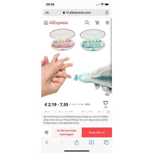 Ik heb dé tip! Dit is een elektrische nagelvijl voor baby’s/kinderen. Je hebt er verschillende vijlen bij, waaronder eentje speciaal voor baby’s. Het doet geen pijn, duurt niet lang en als er teveel druk op komt (doordat baby z’n armpje strekt en er tegenaan komt oid) dan stopt de vijl met draaien! Via bol.com zijn ze ook verkrijgbaar! Dan zijn ze wel duurder maar je hebt hem sneller! 😃