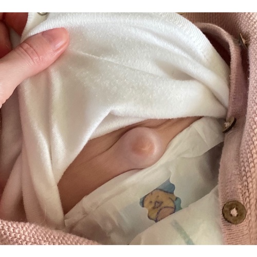 Dat ik het berichtje plaatste was het op z’n ergst toen was ze 3 maanden. Ze had het altijd al klein beetje maar opeens was het in 1x erg groot geworden dus was ik van geschrokken. Maar groot was juist beter volgens de arts want dan kan het ook niet klem komen te zitten. Maar zoals het kwam is het ook opeens weer gegaan, maar heeft er dus wel 2 maandjes zo uitgezien. En wat ik zei de arts zegt dat het in bijna alle gevallen over gaat. Hoop je er een beetje mee gerust te stellen! Ik was zo geschrokken maar komt dus gewoon helemaal goed 😊