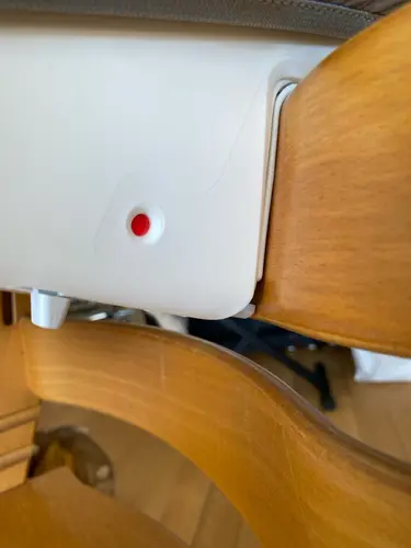 Mijn vader heeft de stukjes uitgevijld/gezaagd om de newbornset te gebruiken. Nu zit er vrijwel altijd een kussentje op waardoor je het niet meer ziet, maar anders was het ook niet storend vond ik.