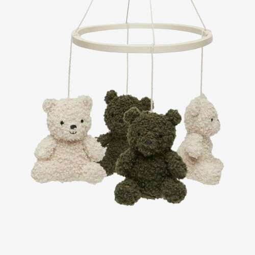 Wij hebben deze van jollein en onze zoon van 3 maanden kan er heerlijk naar liggen kijken. Soms geef ik hem in het voorbijgaan een zetje, dan bewegen de beertjes even, maar dat is opzich niet eens nodig.