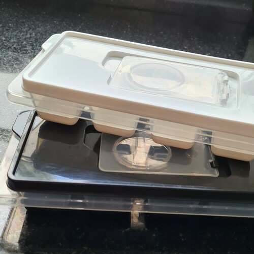 Tip: vries alles in die ijsblokjes bakjes, zodra het bevroren is , dan onder de heet water kraan los krijgen en dan in ziplock zakjes doen. Scheelt je mega wachttijd en heet water en je hoeft niet extreem veel ijsblokbakjes in te slaan.