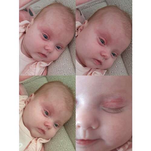 Hierbij een foto va de reactie na de 1e testdag, waar dus de koemelk in zat. We laten het er niet bij zitten.ik heb zelf als baby ook koemelk allergie gehad. (En mijn zus ook.) Mijn moeder past 2 dagen per week op, en herkent zoveel, van toen wij het ook hadden. Wordt vervolgd, En anders een second opinion!