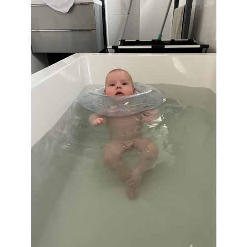 Wij hebben hem al veel gebruikt. De kleine vind het heerlijk om lekker in bad te drijven. Super handig, heb je zelf je handen vrij. En de kleine kan lekker dobberen. Nu ze 7,5 maand is heb ik een badring gekocht waarin ze kan zitten. Ook heel handig :)
