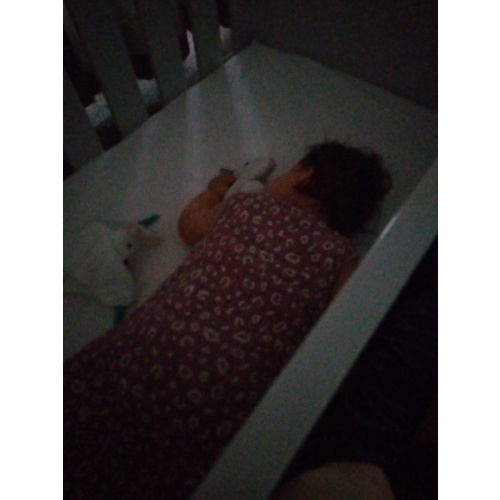 Overdag slaapt ze er nu heel goed in, in de nacht laat ik haar eerst in slaap vallen op mijn bed en dan overleggen naar ledikant. Avond doet ze dus nog wat moeilijk, maat mag verder niet klagen